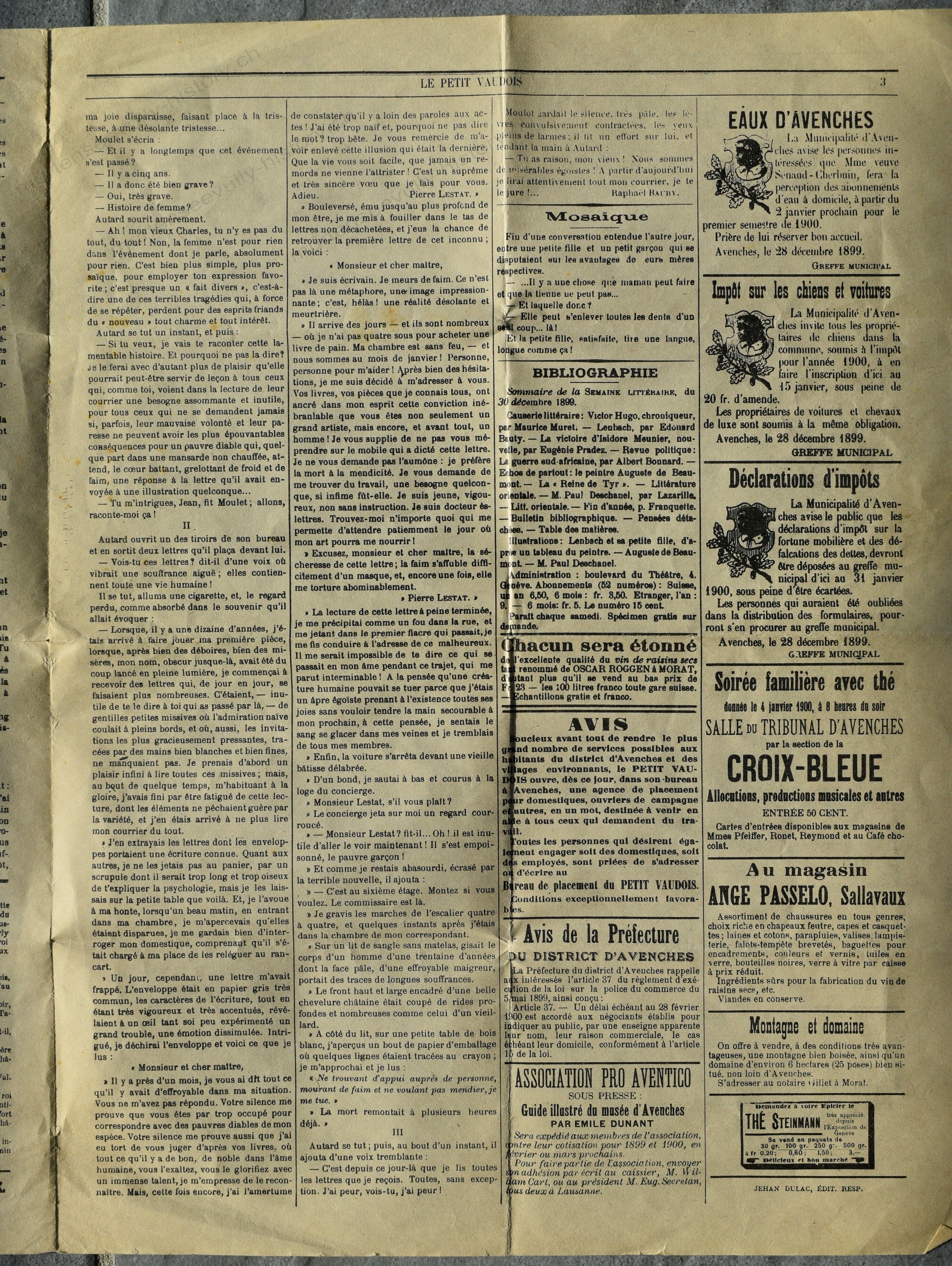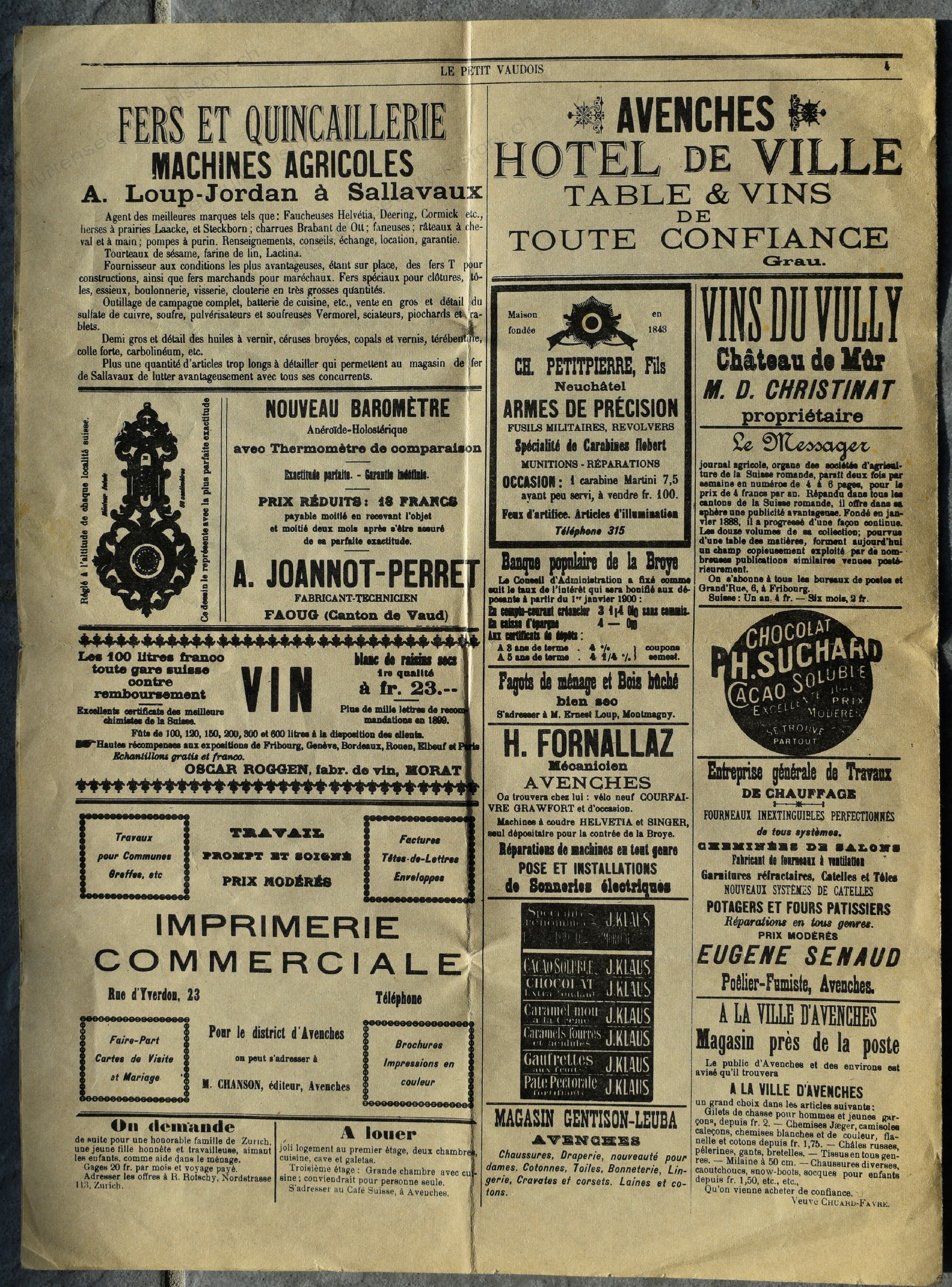 Organe des habitants de la ville et du district d'Avenches. Le journal est édité et imprimé à Avenches.