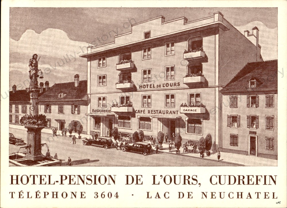 Ortschaft:  Cudrefin Jahr: 1930 Name: L'hôtel de l'Ours transformé et la fontaine de la Justice Thema: Brunnen, Restaurant Hotel Beschreibung: Besitzer: EDL1584 |
